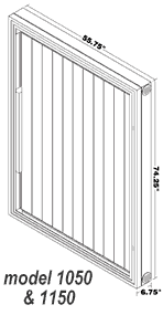 FRAME: Extruded .090 heavy gauge aluminum has two sections. There is a 4" deep rear channel and a 2 1/16" door channel. The rear channel houses all the triangular prisms, gears, motors and lighting. The door channel houses an abrasion-resistant UV rated polycarbonate facia. The rear and the door channel are connected on the left side by a piano style hinge. A neoprene gasket fits between the rear and door channels to provide tight closure, creating an overall depth of 6 1/4". Aluminum cross bracing on the back panel increases overall depth to 6 3/4" on models # 1050 & 1150. TRIANGLES: Four inch wide panels of .060 clear, extruded acrylic interlock to form a triangle. Double grooved-lip edges on all corners allow for easy insertion and securing of graphics or posters. Injection molded ABS caps connect the triangular prisms to the drive system at the top and to the lighting system at the bottom. TIMING & DRIVE SYSTEM: Permanent geared synchronous motor actuates Teflon injected Derlin gears. There is one gear attached to each triangular prism. A gear consists of a continually rotating cam wheel connected to an intermittently rotating pin wheel. This creates a start-stop ratio of 4 1/2 to 1. Standard timing stops nine seconds on each side with two seconds rotation. LIGHTING: Tru-Aim 20 watt halogen lamps located beneath the triangular prisms provide 5,000 beam candle power with approximate warm color temperature of 3,000 kelvin. Lightweight electronic ballasts efficiently transform 120V input to 12V output. ELECTRICAL: Insulated 18 gauge wiring includes one ground, one neutral and one hot. All routed through block connectors, the lighting and motor modules are attached by snap-in type circuit plugs. Each unit is equipped with a junction box located in the bottom left hand corner. There is a 1" hole located 2" up from the bottom and 2" in from the side. INSTALLATION: For wall mounting, there are pre-drilled holes located in the back rear panel on each side of the triangular prisms. There is no space for electrical conduit or installation fasteners in the area where the triangular prisms rotate. An additional 1/2" minimum on each side, top and bottom, is required for a recessed mount of up to 4". If fully recessed, allow another 2 1/8" on the left hinge side for door operation. WEATHERPROOFING: (Applies to 1100 & 1150 Outdoor Cases Only) Powder-coated paint finish and silicone seal all joints and corners. 100% silicone is used to seal the polycarbonate facia inside the door channel. An AC fan is located in the bottom right hand corner. Ventilation is achieved through louvered holes on the right side of the frames rear channel. STANDARDS: Indoor